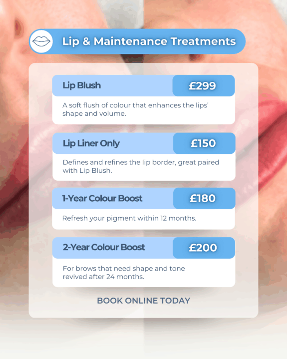 - Lips – restore colour, symmetry and a soft blush of pigment